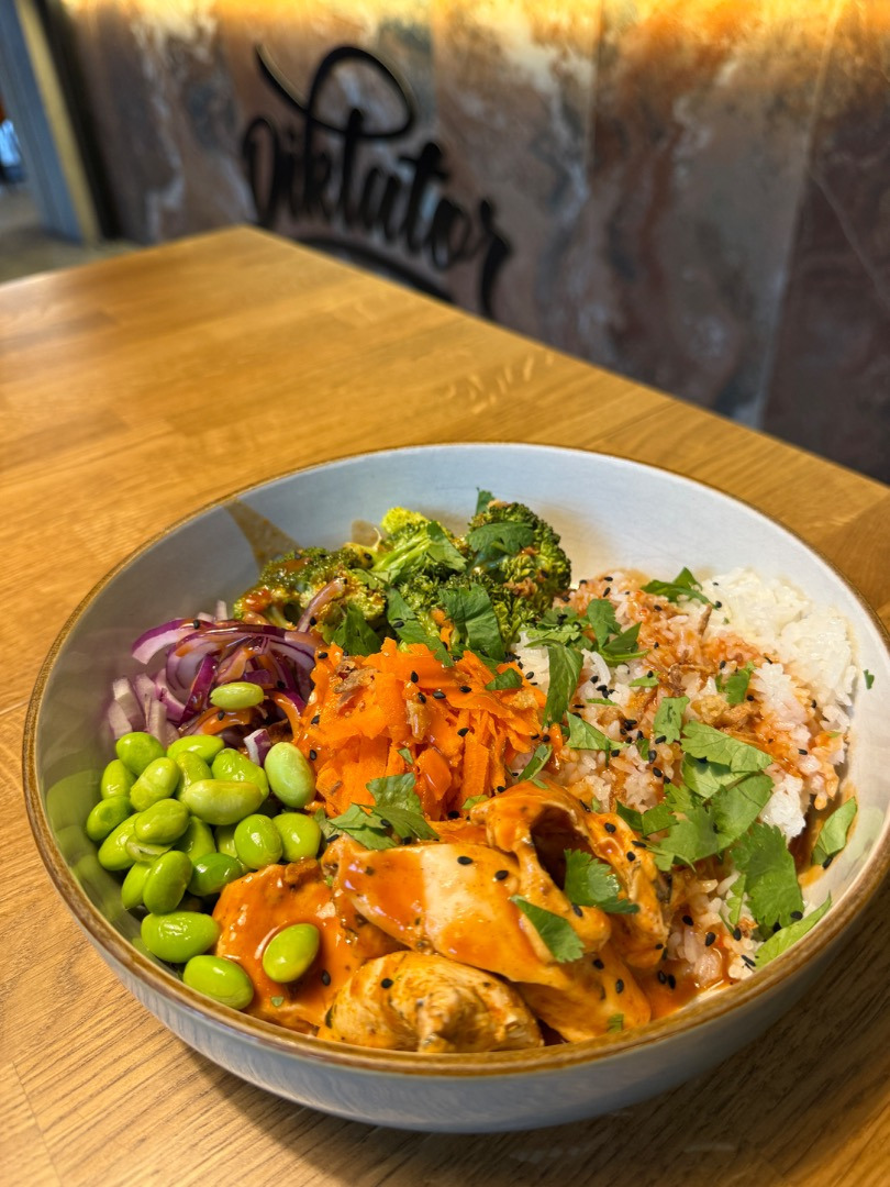 tomat, mozzarella, marinovaná kuracina, chilli omáčka, cibuľa