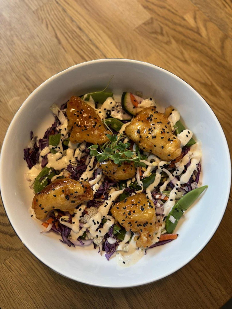 180g kurací rezník v jemne pikantnej kruste, sweet chilli majonéza, 2x syr (cheddar, eidam), slaninový chips, zelený šalát, paradajka, nakladaná uhorka, rukola